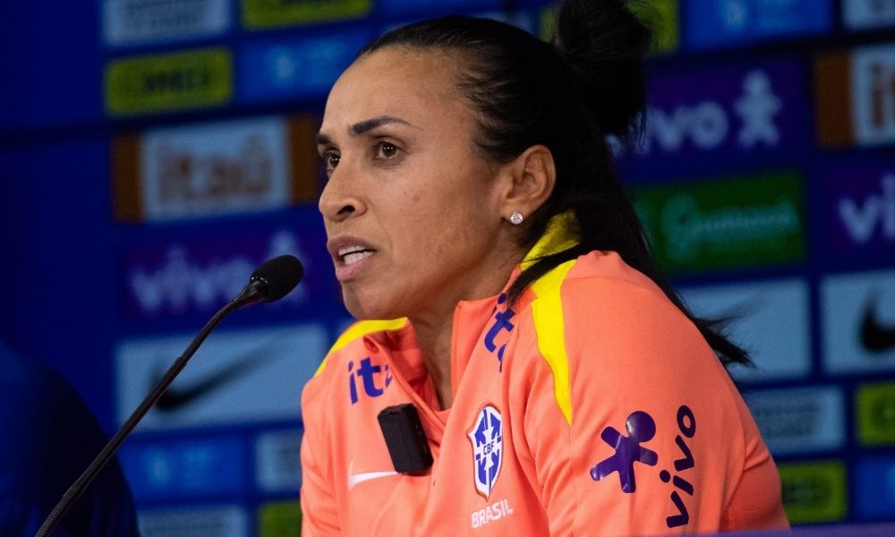 A Seleção Brasileira Feminina realizou na noite desta quinta-feira (29) o último treino antes do amistoso contra o Japão, que acontece nesta sexta-feira (30) na Arena do Corinthians. Uma surpresa deste último dia, foi a presença da Marta na coletiva de imprensa. Inicialmente, não estava programado que ela participaria, apenas Arthur Elias, mas, de última hora, ela apareceu. De volta à Seleção depois de nove meses – seu último jogo com a amarelinha foi nas Olimpíadas de Paris, quando o Brasil conquistou a prata – Marta falou sobre seu retorno e sobre dividir os holofotes com outras jogadoras. “Tô me sentindo mais leve. A gente hoje em dia tem outras atletas que se destacam em várias posições, não só uma ou duas. Estados dando voz para outras meninas, não é mais só a Marta que dá entrevista, não é só a Marta que tem as respostas e se destaca em campo, esse tempo ficou para trás”, disse, destacando a importância desde momento e dessa mudança. “É importante porque mostra a evolução do nosso futebol”, acrescenta.