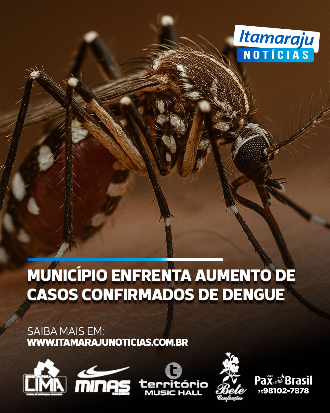 O primeiro semestre de 2025 registrou um aumento significativo da confirmação de casos de dengue em Itamaraju. De acordo com o painel de monitoramento de arboviroses do Ministério da Saúde (https://www.gov.br/saude/pt-br/assuntos/saude-de-a-a-z/a/aedes-aegypti/monitoramento-das-arboviroses), nesse período foram realizadas 157 notificações com 143 casos confirmados, isso representa um índice de confirmação igual a 91,08%. Dados também divulgados no mesmo painel mostram que também entre janeiro e junho de 2025 foram feitas 2 notificações de Chikungunya com 1 caso confirmado.