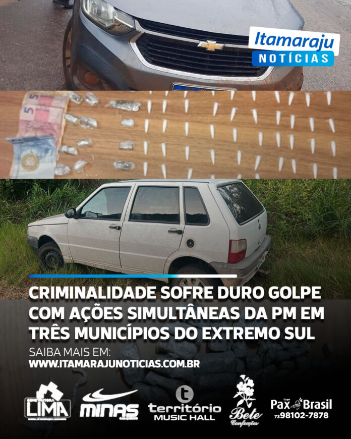 O 8º Batalhão da Polícia Militar intensificou, no último final de semana, suas ações de combate à criminalidade nos municípios de Porto Seguro, Santa Cruz Cabrália e Belmonte. A ofensiva resultou na prisão de suspeitos por tráfico de drogas, apreensão de entorpecentes e na recuperação de veículos roubados.