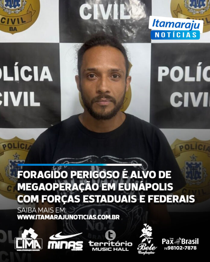 Uma força-tarefa de segurança pública foi mobilizada neste sábado (19 de julho) em Eunápolis, no Extremo Sul da Bahia, com o objetivo de capturar Wanderson Oliveira dos Santos, um dos foragidos mais perigosos da região. A Operação Regresso, como foi batizada, contou com a atuação conjunta da Polícia Civil, Ministério Público da Bahia (MPBA), Polícia Militar, Polícia Federal e Secretaria de Administração Penitenciária (SEAP).