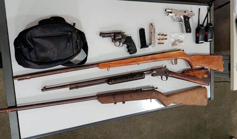 Pistola, revólver, espingardas, carregadores, munições e um veículo foram localizados e apreendidos pelas Forças da Segurança Pública.