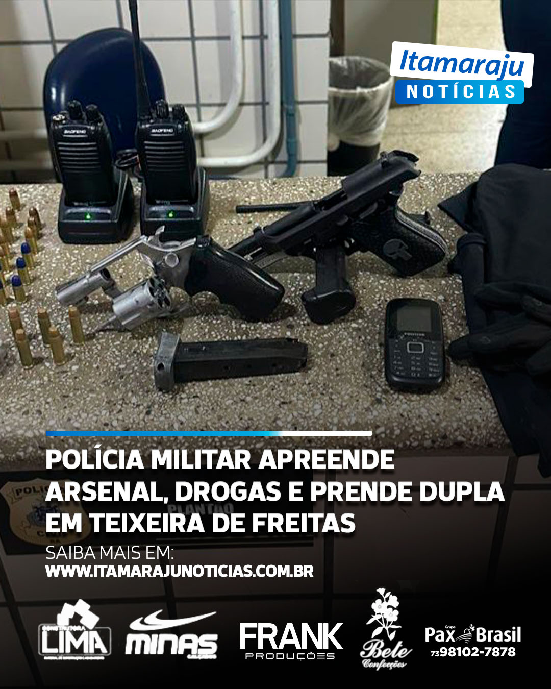 A Polícia Militar deflagrou uma ação decisiva na tarde desta quarta-feira (03 de setembro), que resultou na prisão de dois homens no centro de Teixeira de Freitas e na apreensão de um verdadeiro arsenal de armas, munições e drogas.