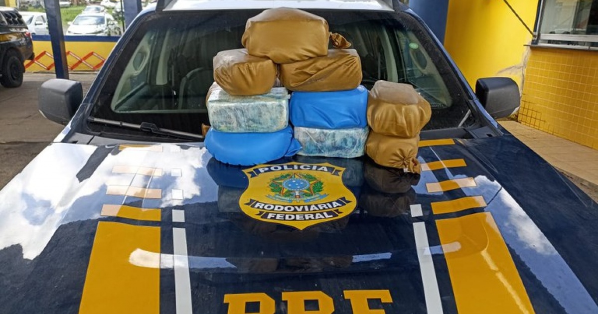 Durante a vistoria, os agentes perceberam um forte odor característico de entorpecentes vindo do bagageiro. Após buscas, a equipe identificou uma mala com 22 tabletes da substância, cada um envolto em bexigas plásticas. Em seguida, os PRFs encontraram o responsável pela bagagem e acompanhou a abertura da mala.