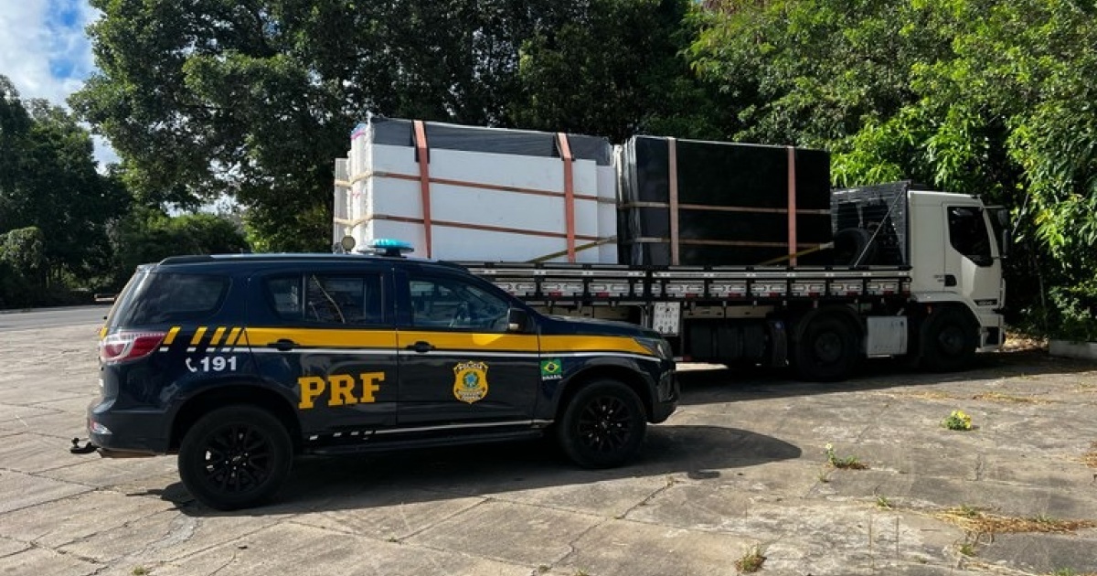 A Polícia Rodoviária Federal (PRF) flagrou um caminhão transportando carga irregular no km 880 da BR-101, em Teixeira de Freitas, na manhã desta sexta-feira (24).